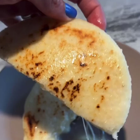 Nuestras arepas rellenas de queso son perfectas para disfrutar en cualquier momento. Elaboradas 100% con maíz natural y rellenas con queso de alta calidad, sin conservantes ni aditivos. Hechas artesanalmente, con un relleno generoso y delicioso.